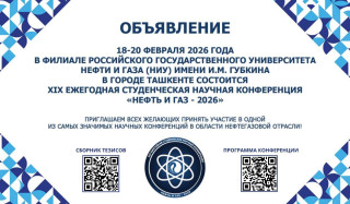 17 февраля 2022 года в Филиале РГУ нефти и газа (НИУ) имени И.М. Губкина в г. Ташкенте была проведена ежегодная студенческая научная конференция «Нефть и газ - 2022».