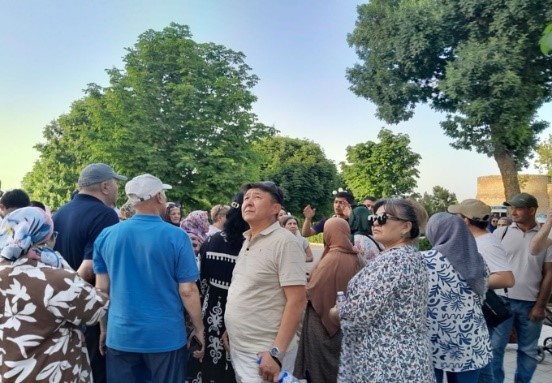 Во время путешествия сотрудники стали свидетелями достопримечательностей старой части города. Состоялось посещение Гур-Эмира - усыпальницы Темуридов, являющейся неповторимым историческим шедевром зодчества Средней Азии, местом захоронения Амира Темура, двух его сыновей - Шахруха и Мираншаха, его внуков, Мухаммед-Султана и великого астронома Улугбека, а также духовного наставника Темура, мусульманского шейха из Медины - Мир Саида Барака. Далее процессия переместилась на главную площадь - Регистан, величина и красота которой достойна высокого восхищения и восторга.