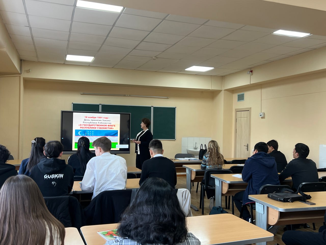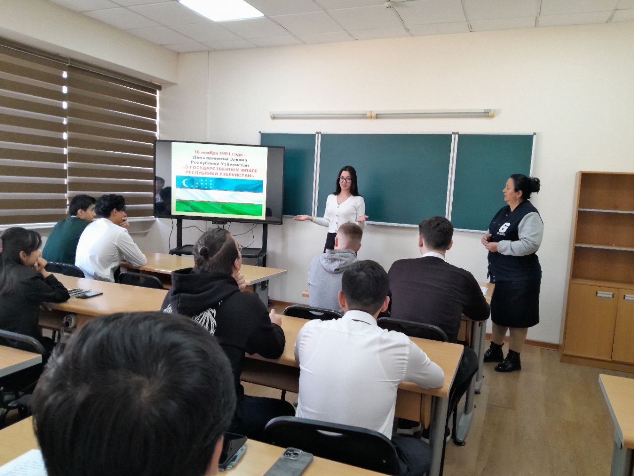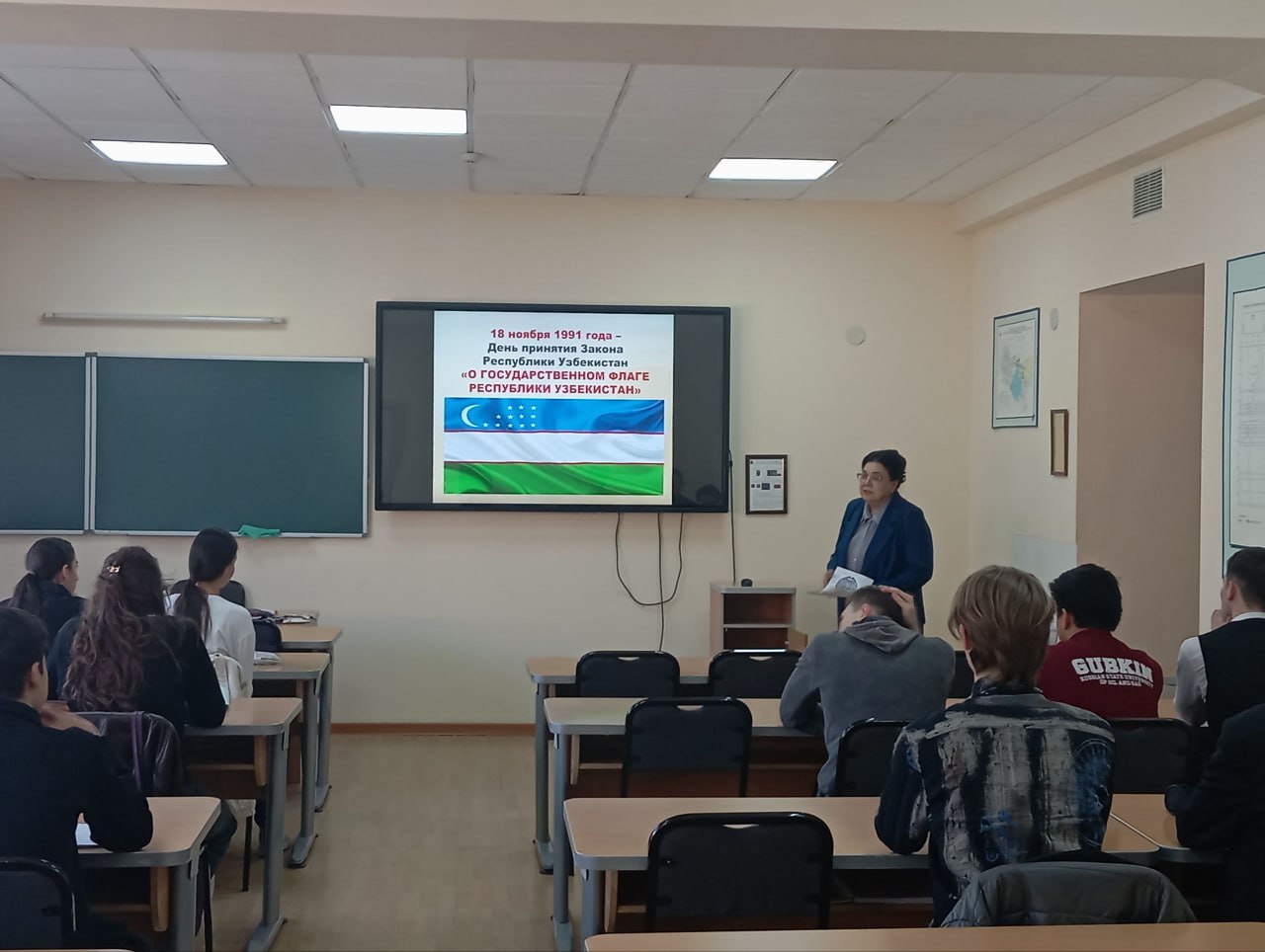 Флаг Республики Узбекистана является олицетворением места и роли государства и общества в мировом сообществе, символом гордости каждого узбекистанца. В этом году в нашей стране отмечают 34-ю годовщину принятия Государственного флага Узбекистана. В учебных аудиториях Филиала состоялись информационные беседы о величии и значении государственного флага Узбекистана. По теме прозвучали выступления студентов и педагогов, продемонстрированы презентации, посвященные основной сути и содержанию одного из главных достояний страны.