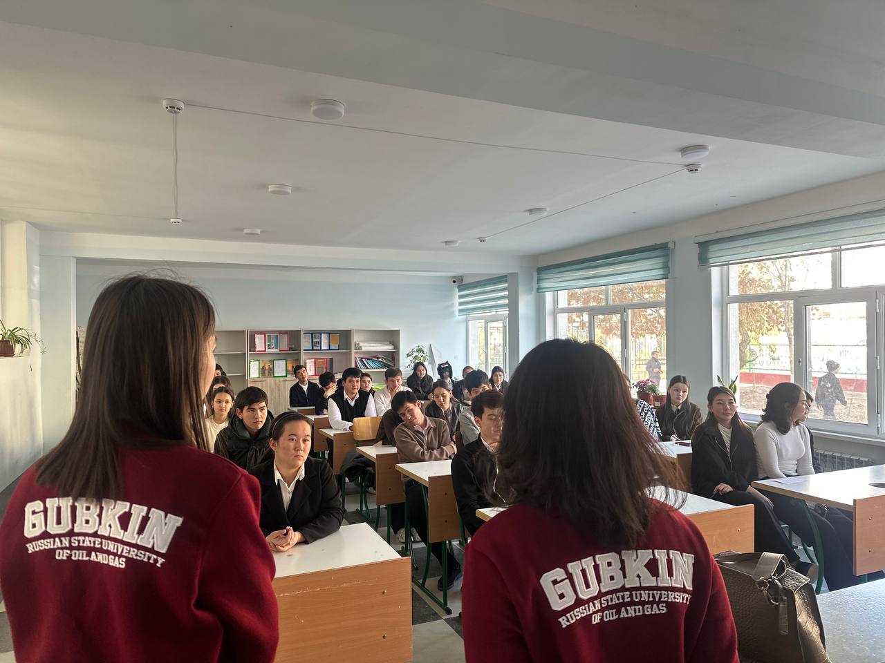 13–15 ноября 2025 года сотрудники Филиала РГУ нефти и газа (НИУ) имени И.М. Губкина в городе Ташкенте и студенты-победители I Губкинской предметной олимпиады-2025 провели профориентационную работу в городах Нукус и Кунград.