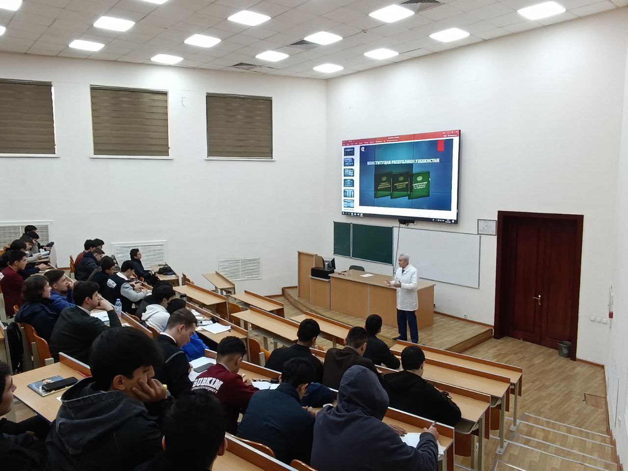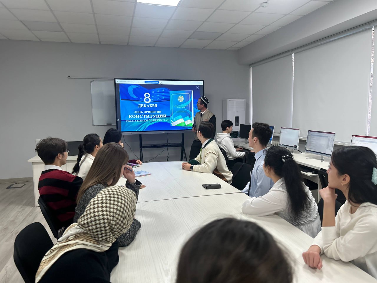 В целях достойной встречи и празднования на высоком уровне 33-годовщины Конституции Республики Узбекистан, профессорско-преподавательский состав, сотрудники и студенты проявили активное участие в духовно-просветительских мероприятиях, объединились во имя благородных ценностей, воплощающих в себе главную идею «Конституция - гарант чести и достоинства человека, свободы, равенства и справедливости!».