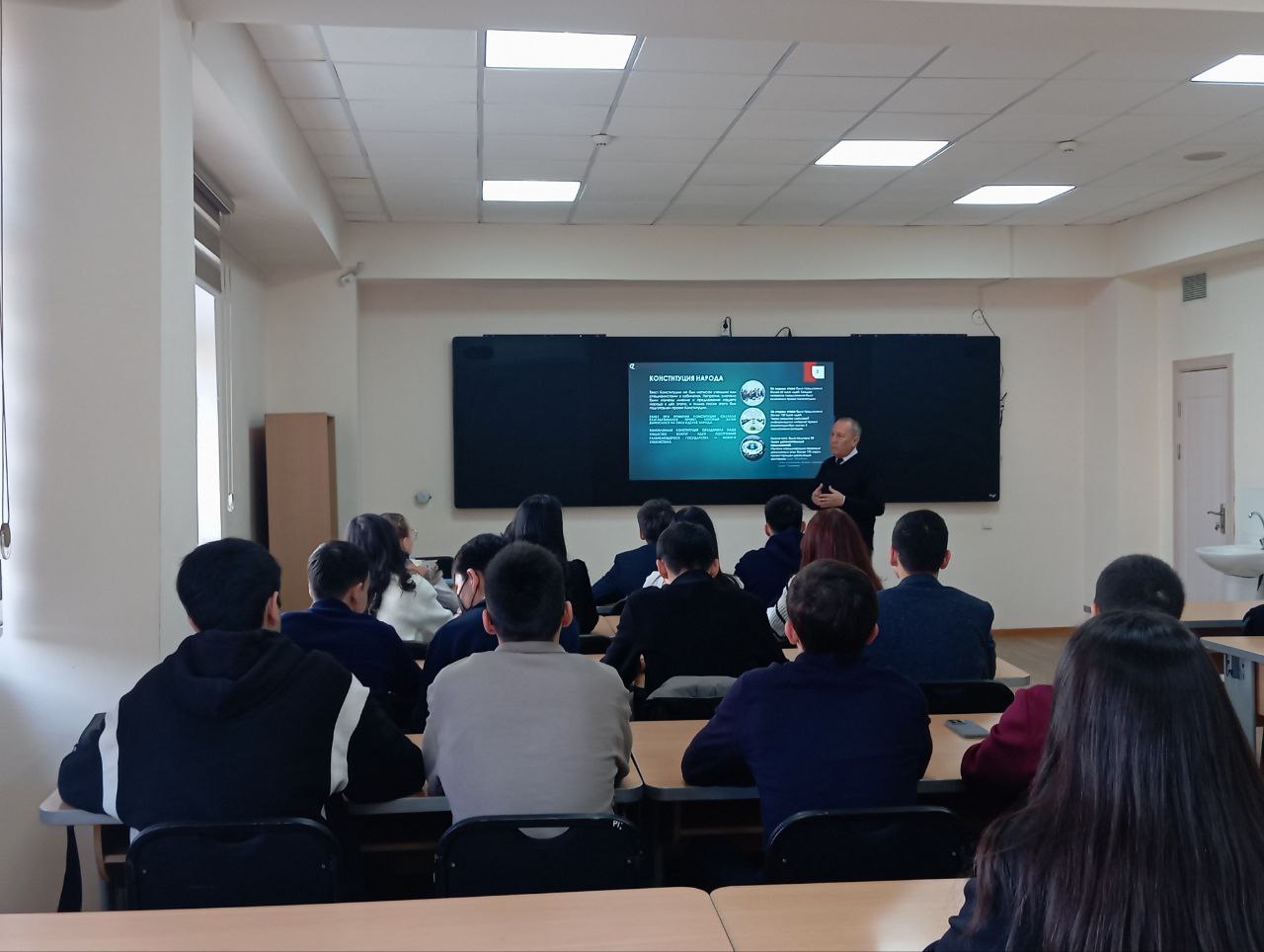 На Уроках Конституции детально остановились на таких статьях, как: право на жизнь является неотъемлемым правом каждого человека и охраняется законом (ст. 25); честь и достоинство человека неприкосновенны (ст. 26); каждый имеет право на свободу и личную неприкосновенность (ст. 27); каждый имеет право на свободу мысли, слова и убеждений (ст. 33); каждый имеет право на собственность (ст.41) и др. Далее подробно были изучены и другие нормы данного юридического документа.