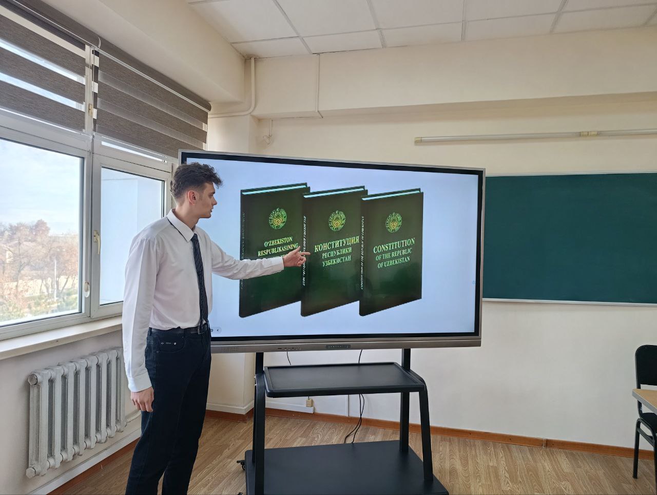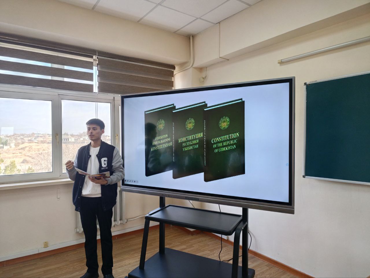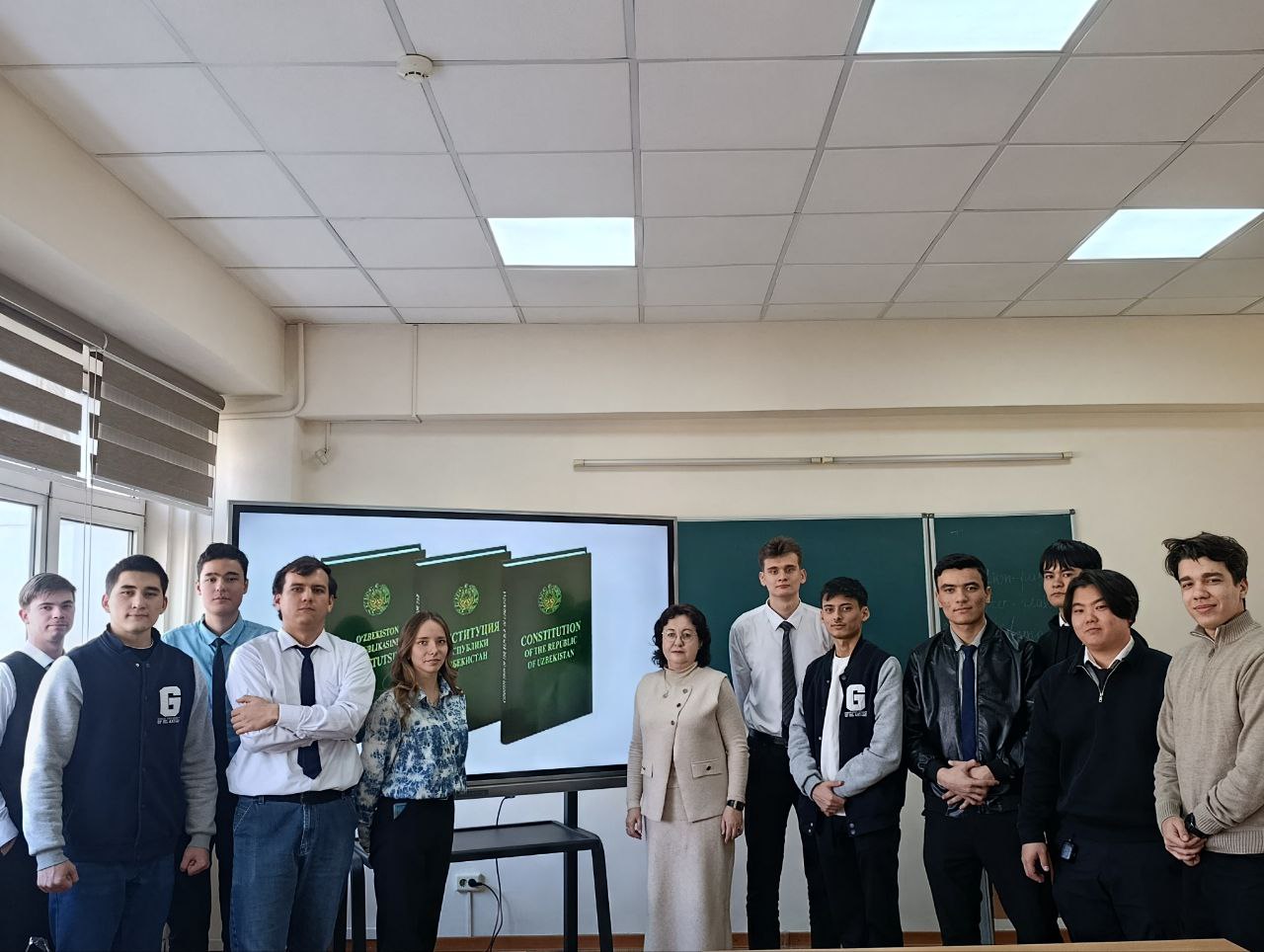 В преддверии празднования 33-летней годовщины принятия Конституции Республики Узбекистан преподаватели кафедры «Иностранные языки» с участием студентов группы УГЦ-23-04 провели интерактивное мероприятие, которое в увлекательной форме презентаций в формате «вопрос-ответ» позволило раскрыть основные постулаты Основного Закона Республики Узбекистан на английском языке.