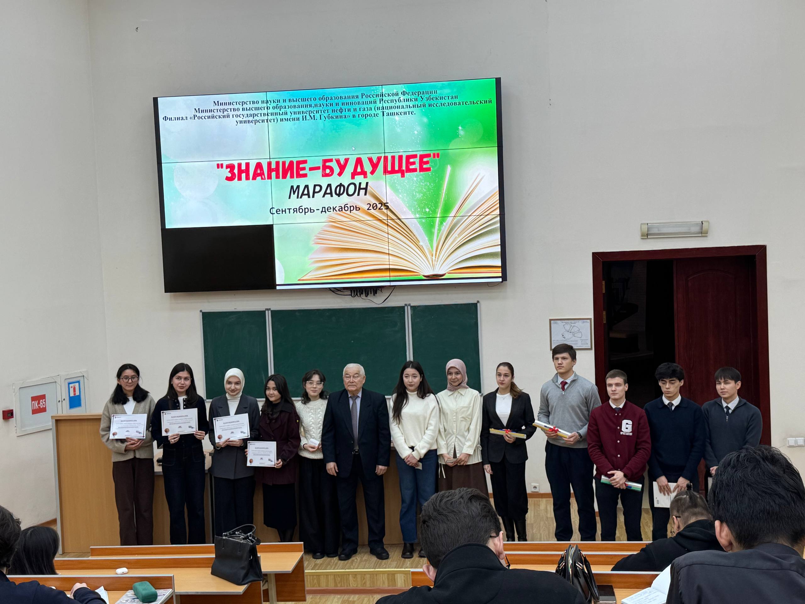 В Филиале РГУ нефти и газа (НИУ) имени И.М. Губкина в городе Ташкенте в осеннем семестре в рамках студенческого кружка «Мерос» отделением «Проектирование, сооружение и эксплуатация систем трубопроводного транспорта» под руководством профессора Малянкариева Бахтиера Абдугаффуровича проведен марафон «Знание — будущее» с участием студентов кафедры «Экономика нефти и газа».