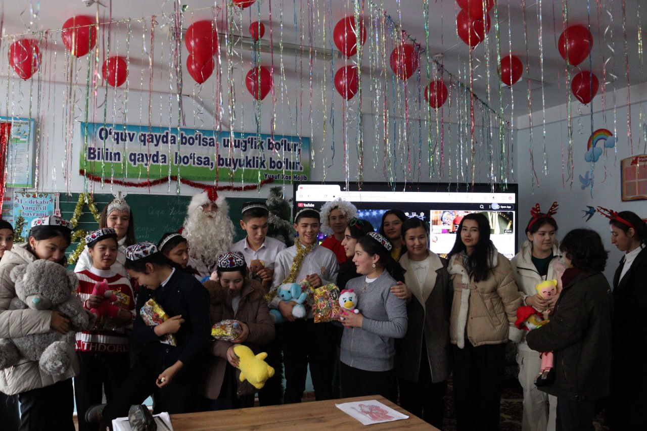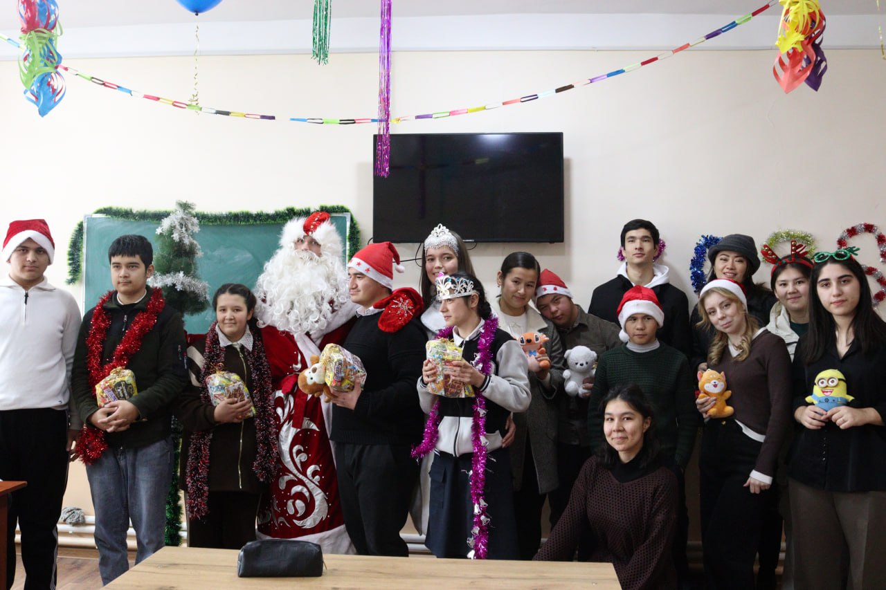 В преддверии Нового года волонтёры Филиала организовали для воспитанников школы-интерната №125 города Газалкента настоящий праздник тепла, радости и искреннего внимания. Благотворительная инициатива «Согреем сердца вместе» объединила студентов и сотрудников Филиала вокруг общей цели — подарить детям ощущение заботы, поддержки и веру в новогоднее чудо.