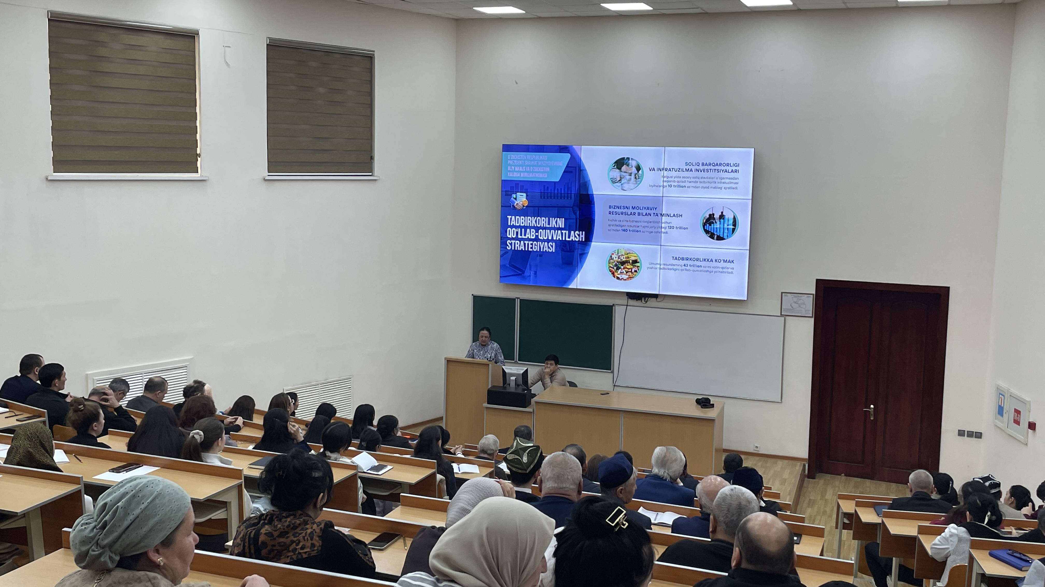 В начале выступления Президента отмечалось, что за последние годы страна прошла значительный путь развития, добившись устойчивого экономического роста, расширения социальных гарантий и укрепления верховенства закона. Результаты реформ стали ощутимы в повседневной жизни каждого гражданина, в благоустройстве населённых пунктов, развитии инфраструктуры, социальной сфере, цифровых услугах, а также в укреплении внешнеполитических позиций Республики Узбекистан.