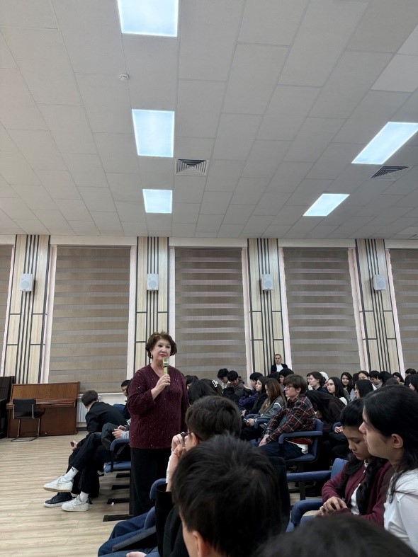 Намазова Ш.А. рассказала о деятельности вуза, специфике обучения, а также о современных цифровых и инновационных методах преподавания, применяемые в стенах нашего Филиала. Даны разъяснения о форме дуального образования, а также получении рабочих профессий, условиях творческого развития студенческой молодежи, различных проектах, стартапах, стипендиальных программах и деятельности театральных коллективов.