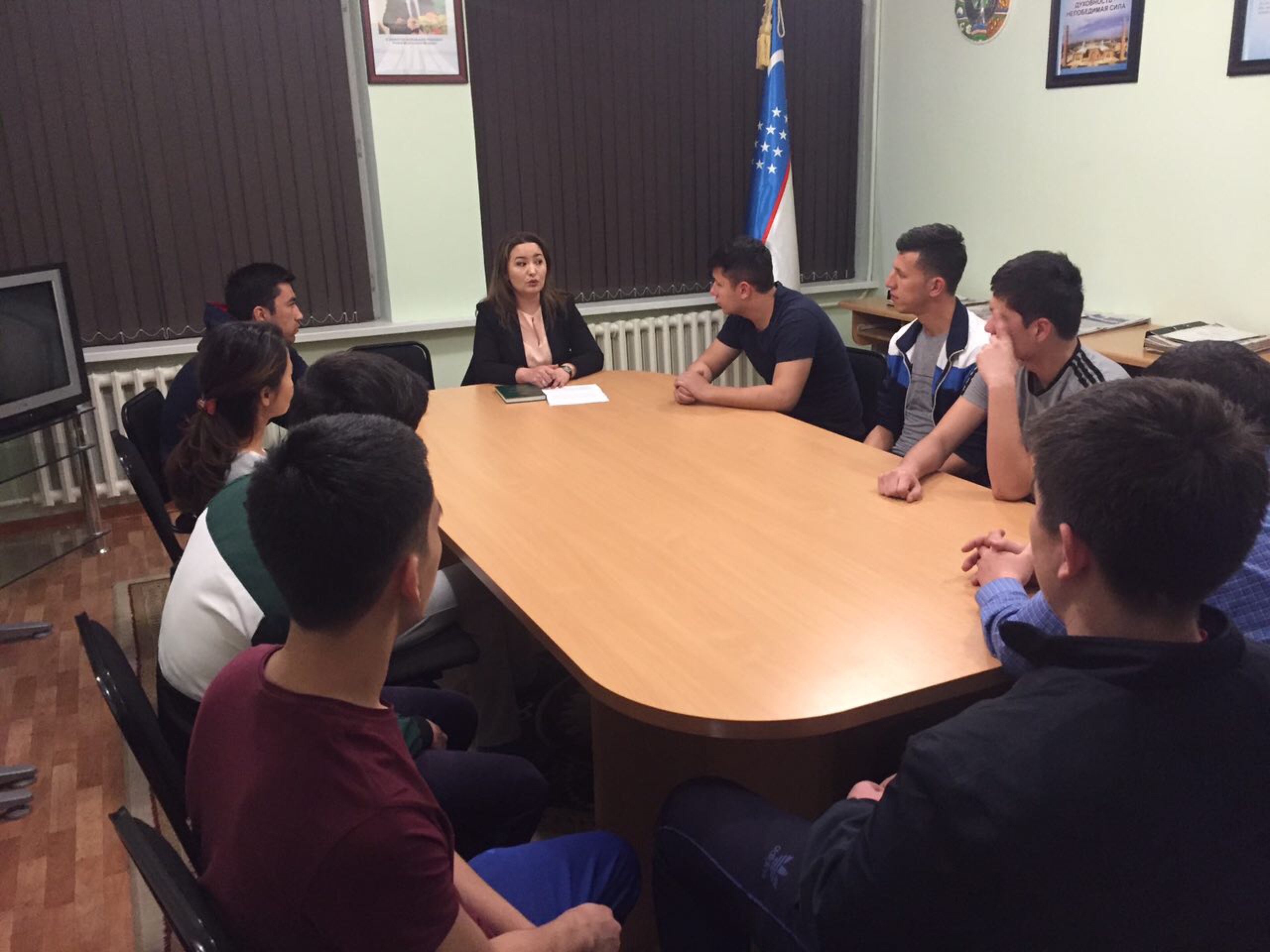 В целях повышения правовой грамотности среди студентов, а также формирования у будущих специалистов понятия о социальной значимости своей будущей профессии преподавателем отделения «Социально-гуманитарные дисциплины» Абдуллаевой Д.У. 10 января 2018 года была проведена беседа со студентами, проживающими в Доме проживания студентов Филиала на тему «Правовые вопросы трудоустройства».