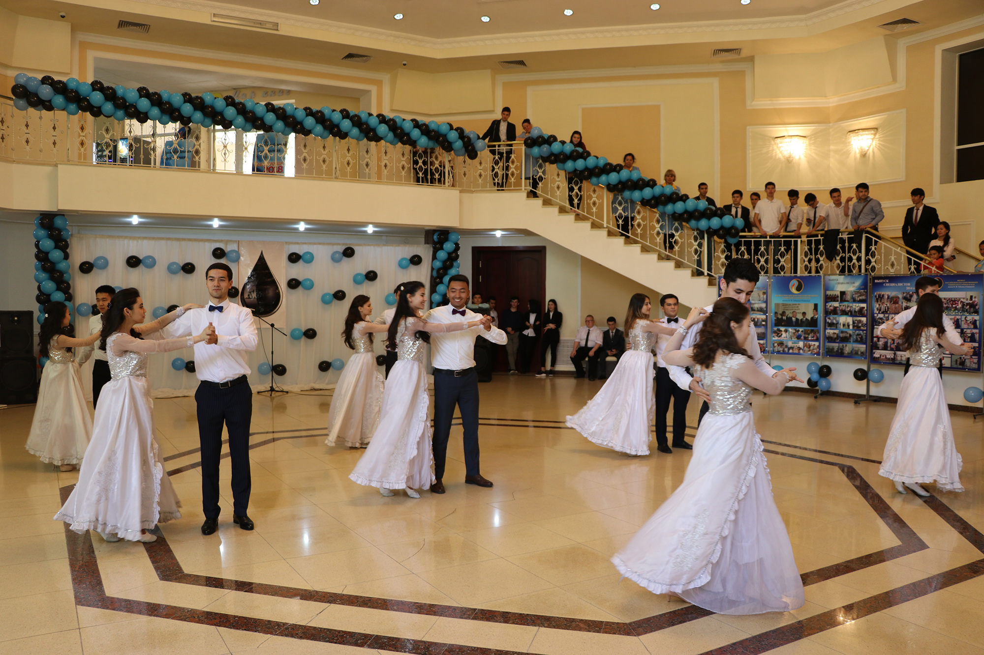 В центральной части учебного здания вуза – организаторы в лице Союза творческих студентов (Р.Жданов) подготовили героям и гостям мероприятия настоящее феерическое празднество. Убранство площадки гирляндами сине-черных – фирменных цветов вуза – шаров, яркий баннер, а еще сверкание хрустальной люстры, отражение ее яркого света в позолоте перил мраморной лестницы придали церемонии дополнительной торжественности. Как нельзя кстати соответствовал возвышенной и приподнятой атмосфере и «Губкинский вальс». Исполненная студентами классическая танцевальная композиция словно перенесла в эпоху балов и высокий мир красоты.