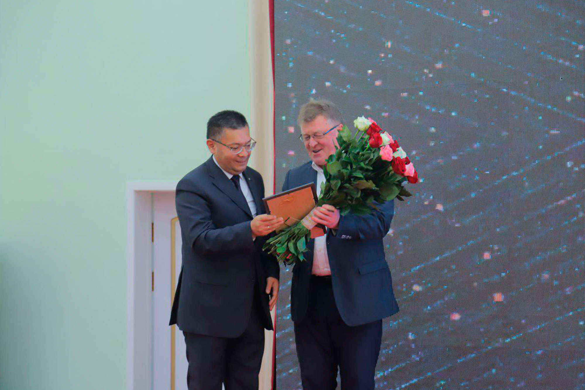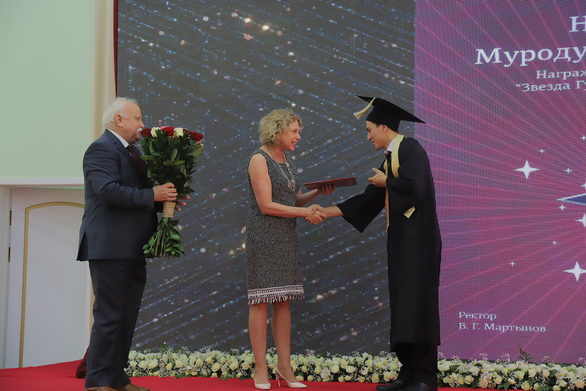 С окончанием вуза выпускников тепло и эмоционально поздравил Директор Филиала РГУ нефти и газа (НИУ) имени И.М.Губкина профессор Александр Максименко. Пожелав достойного продолжения начатого пути в профессию, Александр Федорович наградил почетным знаком «Звезда Губкинского университета» студентов-выпускников Муродулло Норбобооева, Азизжона Ширинбоева, Ирину Тен.