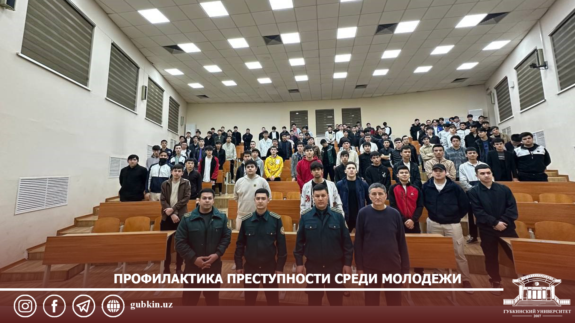 19 март / Все новости ПРОФИЛАКТИКА ПРЕСТУПНОСТИ СРЕДИ МОЛОДЕЖИВ Филиале Российского государственного университета нефти и газа (НИУ) имени И.М. Губкина в городе Ташкенте среди студентов, проживающих в Доме проживания студентов, состоялся круглый стол по профилак...