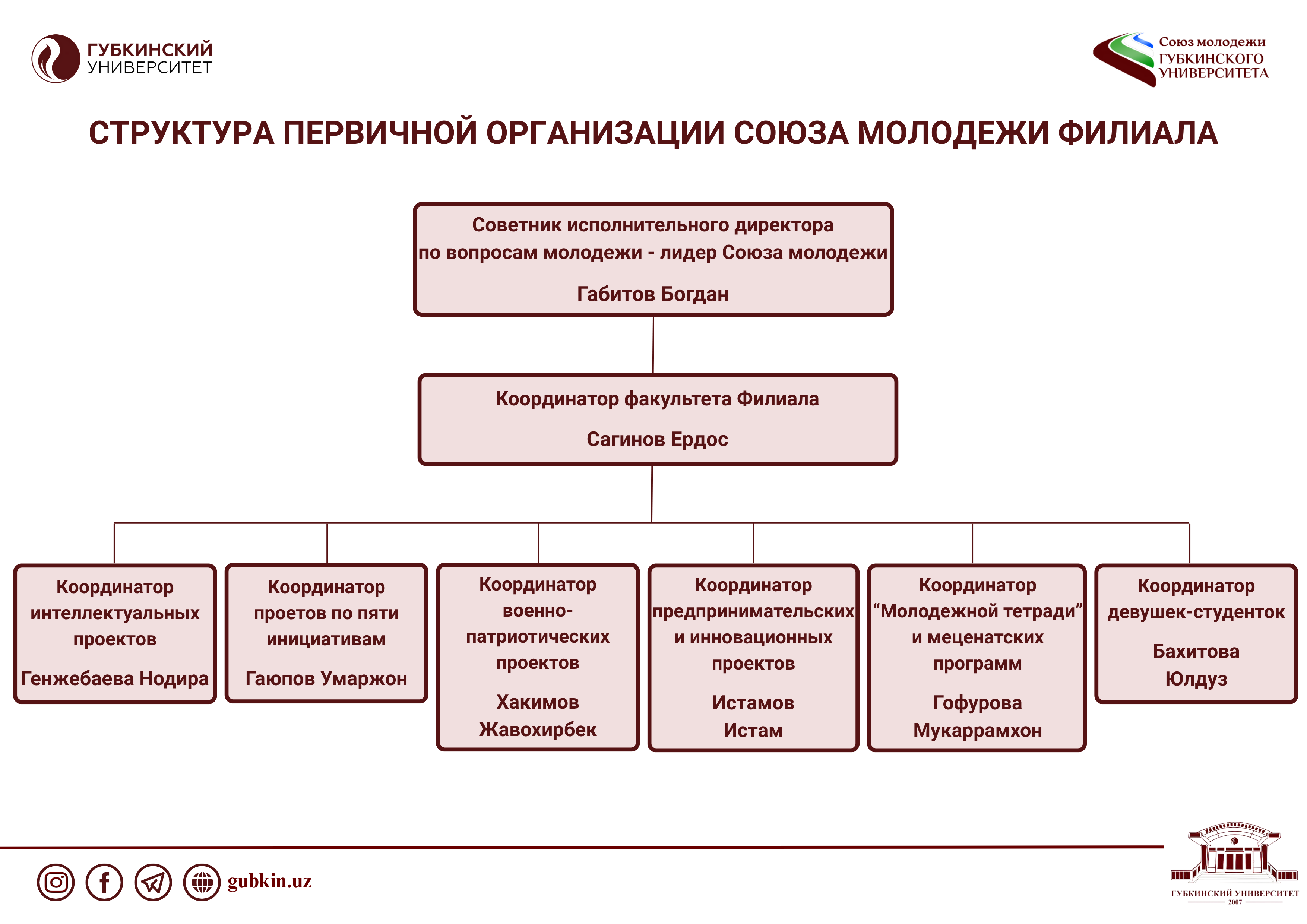 первое, превращение Союза молодежи Узбекистана в структуру, обеспечивающую эффективное взаимодействие с государственными органами, негосударственными некоммерческими организациями и другими институтами гражданского общества в реализации государственной молодежной политики, осуществляющую профессиональную деятельность под девизом «Молодежь — строитель будущего»;