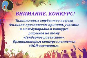 Gender Equality International Drawing Contest Organized by the United Nations Unit for Gender Equality and the Empowerment of Women (UN Women). Anyone between the ages of 18 and 28 is invited to parti...
