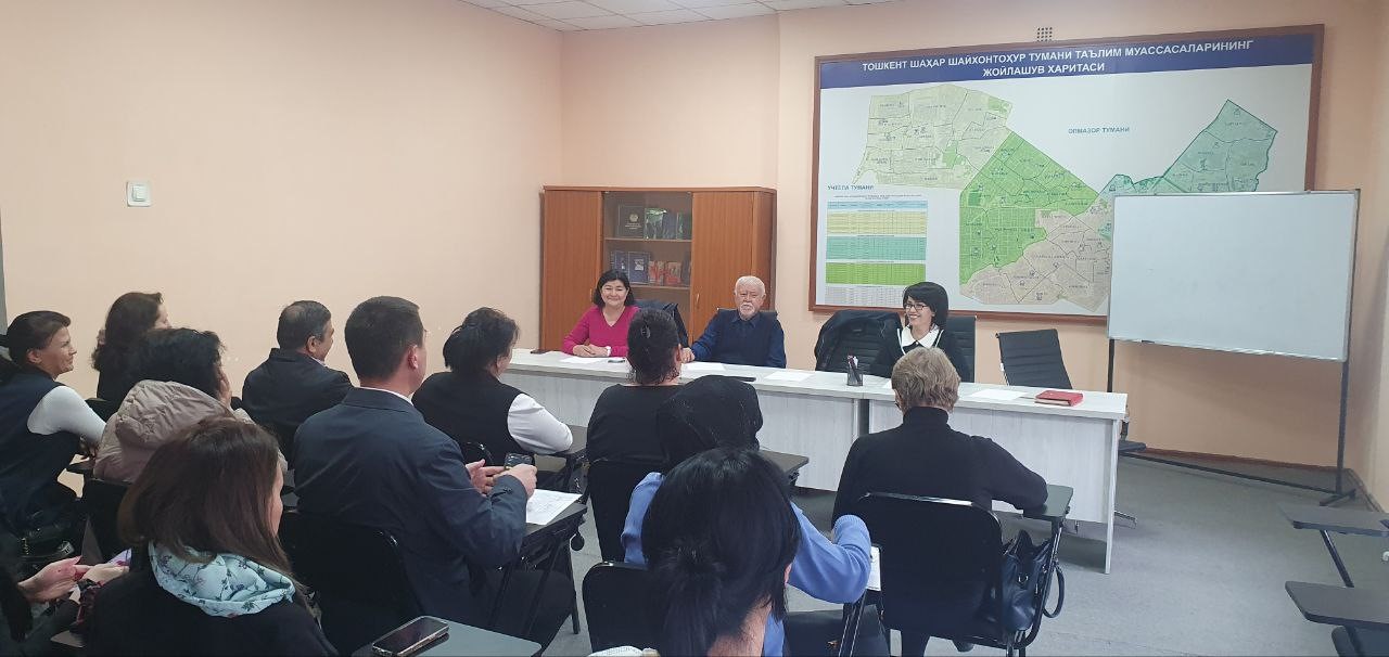Встречу с директорами общеобразовательных школ Шайхантахурского района города Ташкента провели старший преподаватель кафедры «Общая химия и химия нефти и газа»- Шарафутдинова Н.П., а также доцент и старший преподаватель кафедры «Физика, электротехника и теплотехника»- Фаттахов А. и Джабаров А..