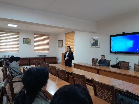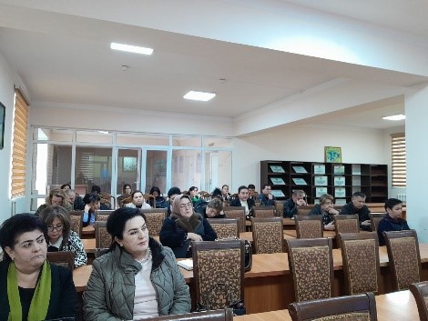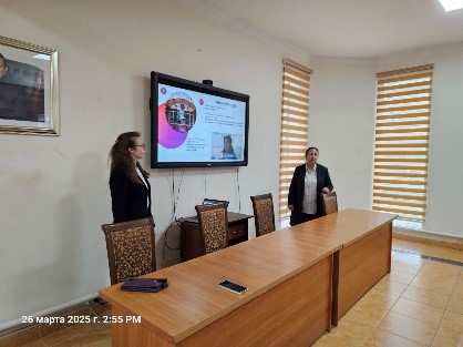 Во время встречи доценты кафедр «Социально-гуманитарные дисциплины» и «Бурение нефтяных и газовых скважин» Азизахон Абдуллажоновна Усманова и Эльзод Ульмасович Мамаджанов продемонстрировали презентационный материал, посвященный образовательной инфраструктуре Филиала, условиях обучения и общественной жизни студентов. Акцент был сделан на современные педагогические технологии и качество обучения, направления и профили специальностей, ознакомили с информационно-ресурсным центром, насчитывающим более тысячи книг, касательно отрасли и художественной литературы.