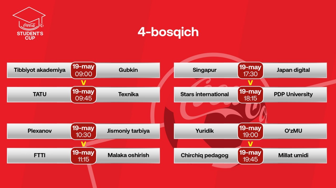 17 мая 2025 года на территории спортивного комплекса «Жар» в городе Ташкент состоялся 3-й отборочный тур крупнейшего студенческого футбольного турнира — Coca-Cola Students Cup, организованного под эгидой Профессиональной футбольной лиги Узбекистана.