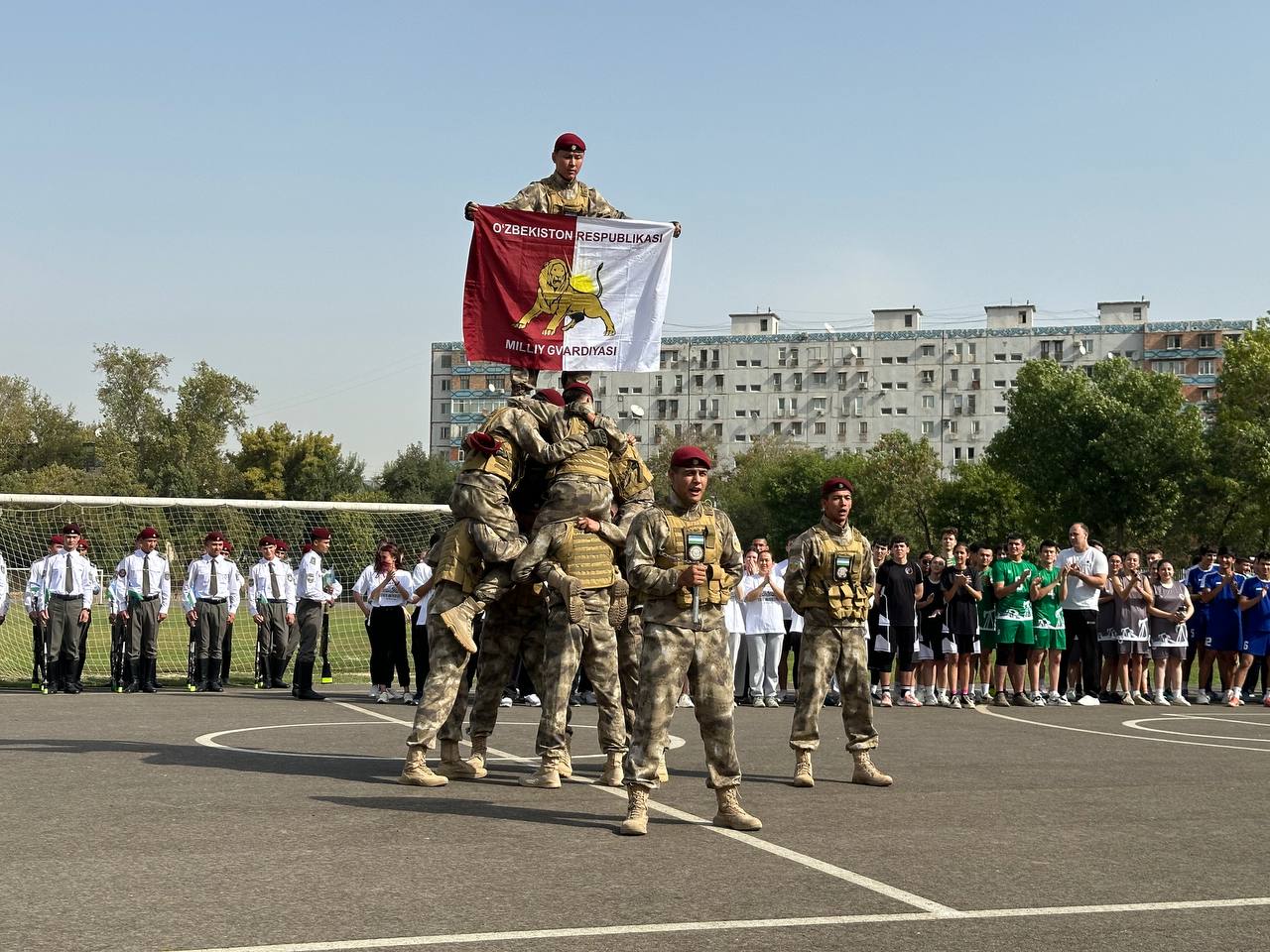 Зрелищным и волнующим стал показательный номер военнослужащих Национальной гвардии по рукопашному бою — яркий пример профессионализма и слаженности. Выражаем искреннюю благодарность Министерству обороны и Национальной гвардии Республики Узбекистан за содействие в организации мероприятия, высокий уровень профессионализма и яркое выступление военнослужащих.