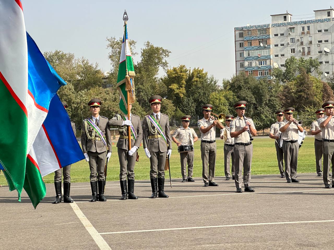 Церемония открытия началась с торжественного внесения Государственного флага знаменной группой военнослужащих Национальной гвардии Республики Узбекистан под величественное звучание Государственного гимна в исполнении военного оркестра Министерства обороны Республики Узбекистан.