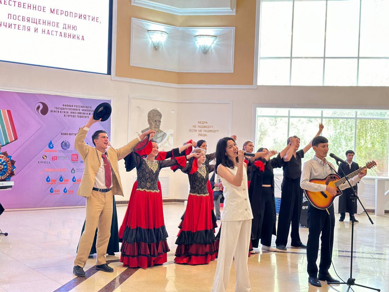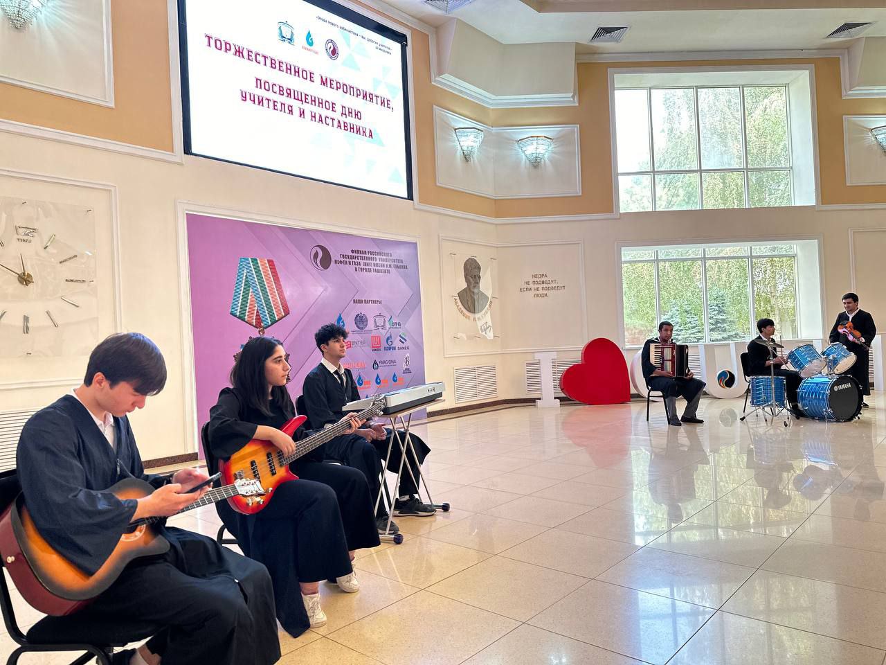 Торжественное мероприятие, посвященное Дню учителя и наставника, началось с музыкально-творческого выступления студентов Филиала. В их исполнении прозвучали проникновенные вокальные произведения и были представлены яркие танцевальные номера, ставшие настоящим украшением праздника и подарившие зрителям радостное настроение.