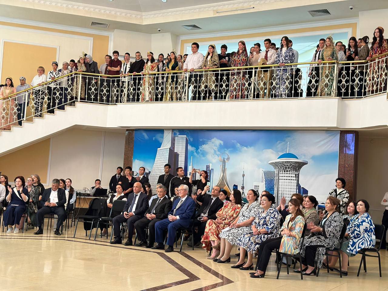 Завершающим акцентом мероприятия стало выступление творческой группы студентов Филиала. Для своих наставников они подготовили яркие вокальные номера, зажигательный танец-попурри, а также дефиле в национальных костюмах, которое особенно украсило атмосферу праздника.