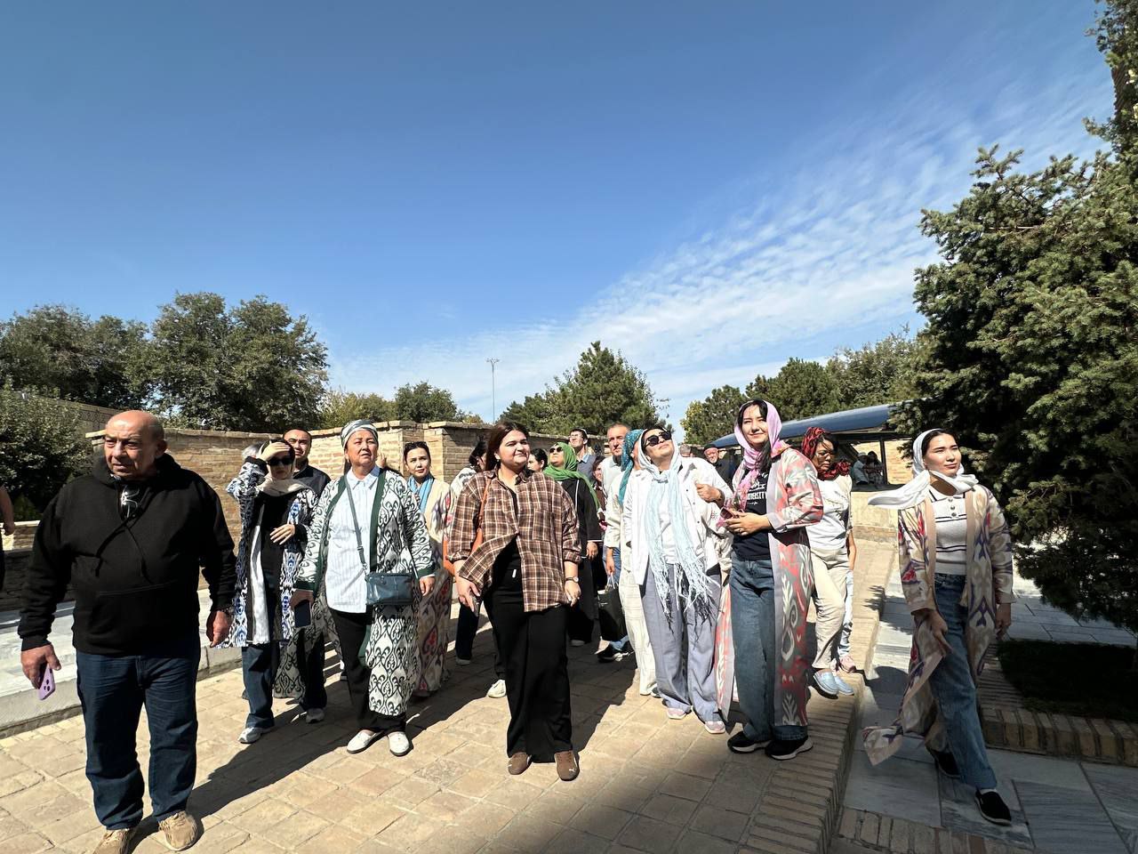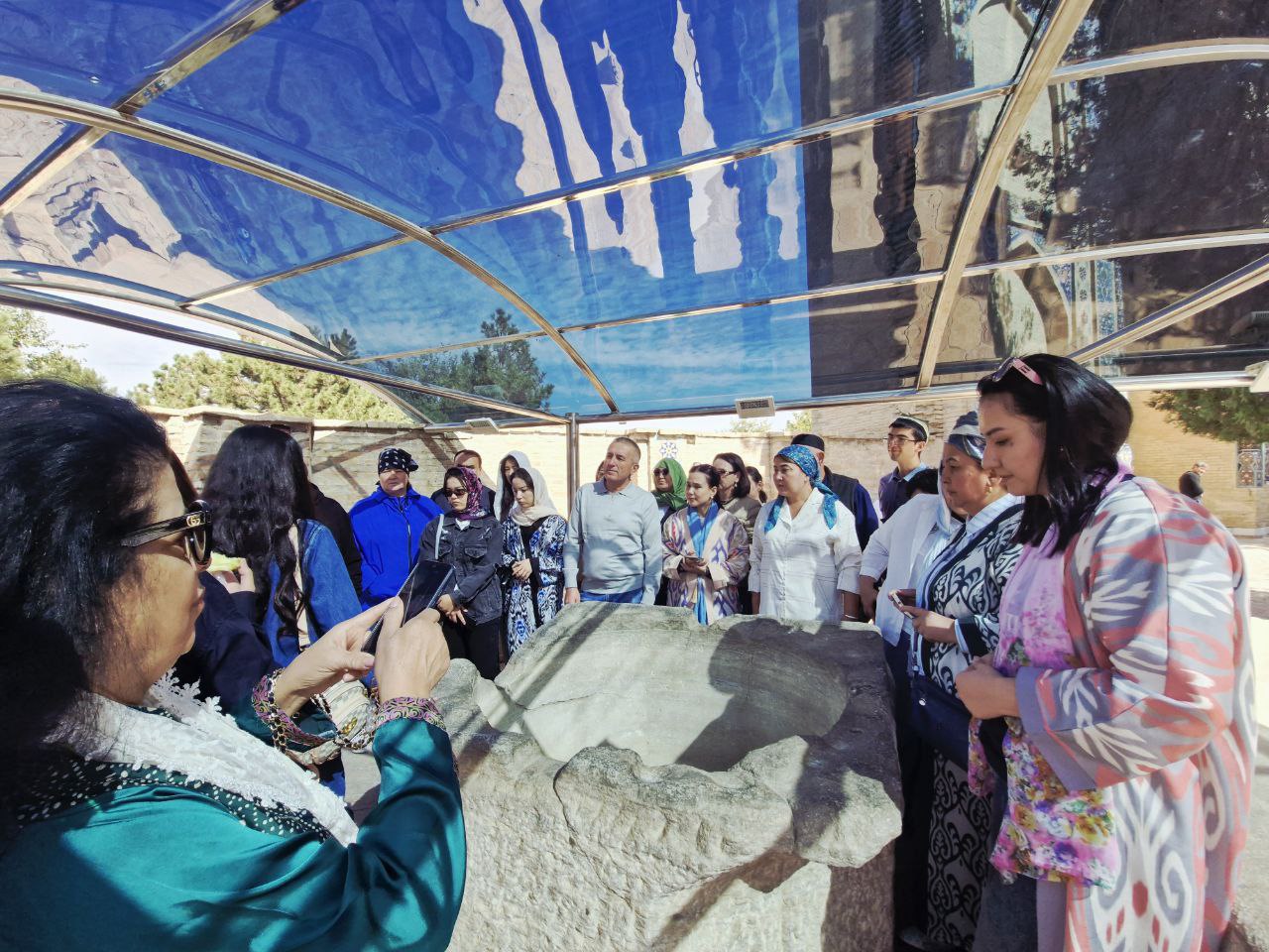 Мероприятие объединило чествование педагогов и знакомство с историческими достопримечательностями Родины. По пути гид рассказал о 2750-летней истории Самарканда — ровесника Рима, Афин и Вавилона. Город, расположенный на берегу Зарафшана, некогда был столицей Согда и славился как перекрёсток Великого шёлкового пути.