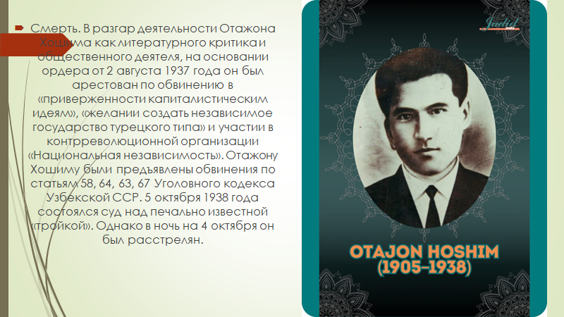 ИЗУЧЕНИЕ ЖИЗНИ И ДЕЯТЕЛЬНОСТИ ОТАЖОНА ХОШИМОВА