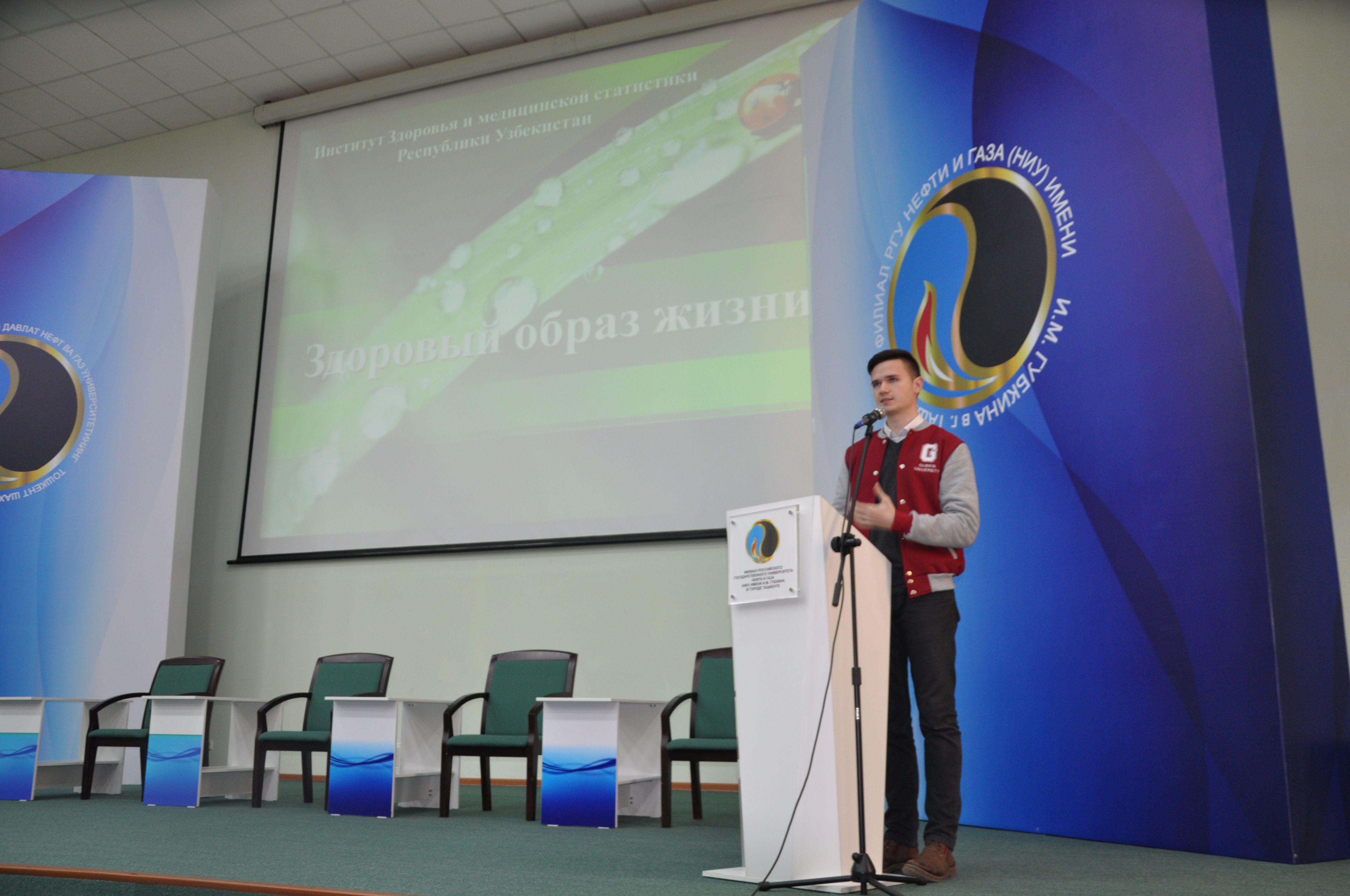 23 февраля 2018 года в Филиале Российского государственного университета (НИУ) имени И.М.Губкина в городе Ташкенте была организована встреча студентов 2 курса со специалистами Ташкентского городского института здоровья и медицинской статистики – кандидатом медицинских наук, доцентом У.Файзиевой, врачом общей практики Г.Ишмурадовой и пропагандистом здорового образа жизни при Управлении здравоохранения Мирзо – Улугбекского района М.Янгибоевой.