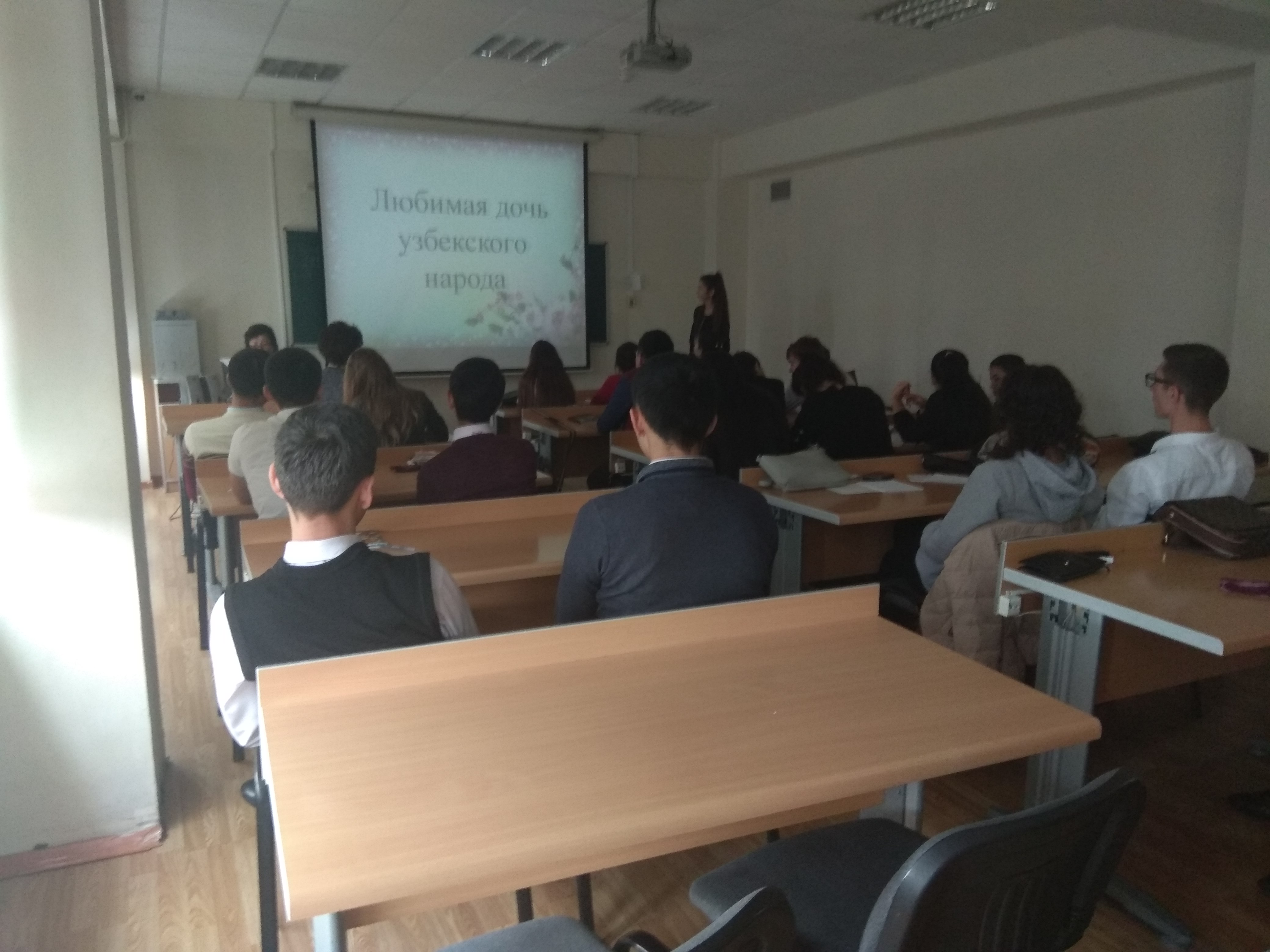 На мероприятии выступили студентки группы ГР-17-01 Собирова Лера и Эргашева Муборак. Они рассказали о жизни и творчестве Зульфии, прочитала стихи знаменитой поэтессы.