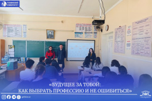 30 янв / Все новости «БУДУЩЕЕ ЗА ТОБОЙ: КАК ВЫБРАТЬ ПРОФЕССИЮ И НЕ ОШИБИТЬСЯ»В общеобразовательной средней школе № 71 Мирзо-Улугбекского района для учащихся 11-класса был проведён профориентационный семинар на тему «Будущее за тобой: как выбрать профессию и не ошибиться&...