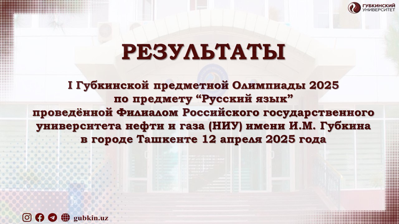 25 апр / Все новости РЕЗУЛЬТАТЫ I ГУБКИНСКОЙ ПРЕДМЕТНОЙ ОЛИМПИАДЫ ПО ПРЕДМЕТУ "РУССКИЙ ЯЗЫК"