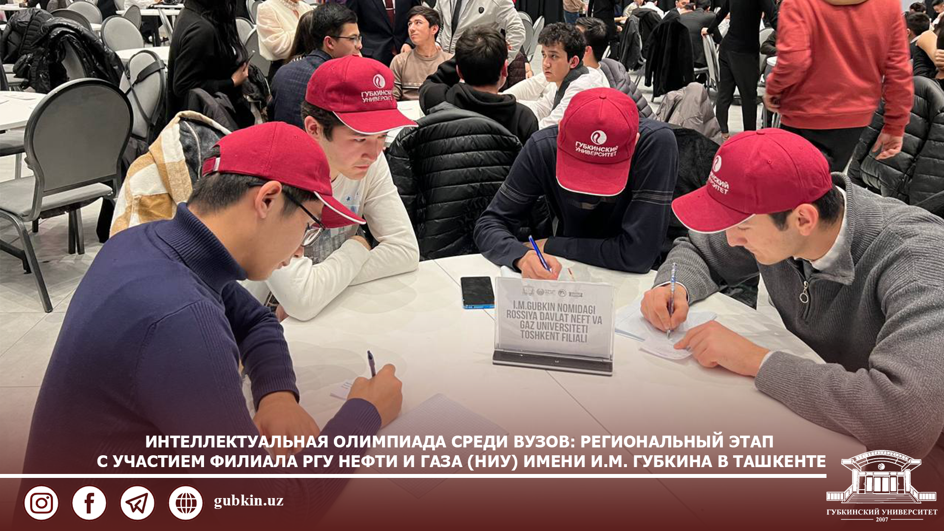 08 дек / Все новости ИНТЕЛЛЕКТУАЛЬНАЯ ОЛИМПИАДА СРЕДИ ВУЗОВ: РЕГИОНАЛЬНЫЙ ЭТАП С УЧАСТИЕМ ФИЛИАЛА РГУ НЕФТИ И ГАЗА (НИУ) ИМЕНИ И.М. ГУБКИНА В ТАШКЕНТЕ