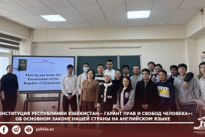 08 дек / Все новости «КОНСТИТУЦИЯ РЕСПУБЛИИКИ УЗБЕКИСТАН – ГАРАНТ ПРАВ И СВОБОД ЧЕЛОВЕКА»: ОБ ОСНОВНОМ ЗАКОНЕ НАШЕЙ СТРАНЫ НА АНГЛИЙСКОМ ЯЗЫКЕ