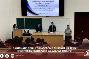 07 дек / Все новости В ФИЛИАЛЕ ПРОШЕЛ МАССОВЫЙ ДИКТАНТ НА ТЕМУ «МЕНИНГ КОНСТИТУЦИЯМ ВА ДАВЛАТ ТИЛИМ»