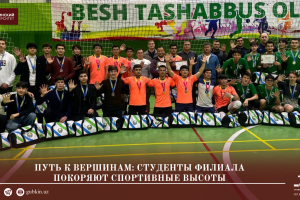 15 ноя / Все новости ПУТЬ К ВЕРШИНАМ: СТУДЕНТЫ ФИЛИАЛА ПОКОРЯЮТ СПОРТИВНЫЕ ВЫСОТЫ!С 7 по 14 ноября 2025 года в Ташкенте прошёл городской этап соревнований «Беш ташаббус» среди высших учебных заведений по настольному теннису, стритболу, волейболу и мини-футболу. Сре...