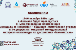 04 окт / Все новости III - МЕЖДУНАРОДНАЯ КОНФЕРЕНЦИЯ «МОЛОДЕЖЬ И ИННОВАЦИИ - БУДУЩЕЕ НЕФТЕГАЗОВОЙ ОТРАСЛИ» И II - СУПЕРФИНАЛ ОТКРЫТОЙ МЕЖДУНАРОДНОЙ ИНТЕРНЕТ-ОЛИМПИАДЫ ПО ДИСЦИПЛИНЕ «МАТЕМАТИКА»