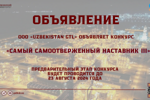 11 авг / Все новости ООО «UZBEKISTAN GTL» ОБЪЯВЛЯЕТ КОНКУРС «САМЫЙ САМООТВЕРЖЕННЫЙ НАСТАВНИК III»