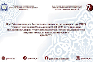 Филиал Российского государственного университета нефти и газа (НИУ) имени И. М. Губкина в городе Ташкенте объявляет открытый конкурс для следующих вакантных должностей: инженер по персоналу отдела ...