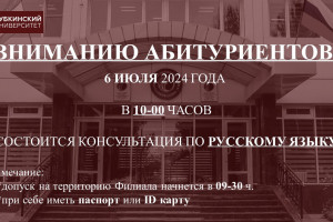 6 ИЮЛЯ 2024 ГОДА В 10-00 ЧАСОВ СОСТОИТСЯ КОНСУЛЬТАЦИЯ ПО РУССКОМУ ЯЗЫКУ Примечание: *допуск на территорию Филиала начнется в 09-30 ч. *при ...