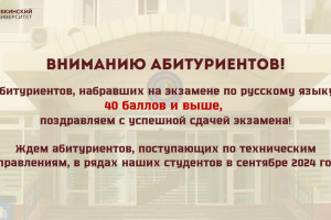ЭКЗАМЕН ПО РУССКОМУ ЯЗЫКУ СОСТОИТСЯ 7 ИЮЛЯ 2024 ГОДА В 09-00 Ч. Допуск на территорию Филиала и выдача экзаменационных листов будут производиться с 07-00 ч. до 08-30 ч. Абитуриенты, опоздавшие к нач...