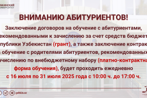 Заключение договоров на обучение с абитуриентами, рекомендованными к зачислению за счет средств бюджета Республики Узбекистан (грант), а также Заключение контрактов на обучение с родителями абитуриент...