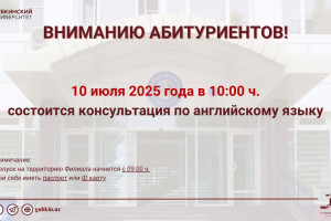 10 июля 2025 года в 10:00 состоится консультация по английскому языку Примечание:*допуск на территорию Филиала начнется с 09:00 ч.*при себе иметь паспорт или ID карту...