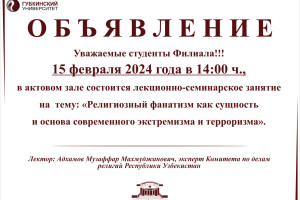 14 фев / Все новости Возвращение к мирной жизниВ целях реализации Концепции организации духовно-просветительской и внеучебной работы со студентами Филиала РГУ нефти и газа (НИУ) имени И.М. Губкина в городе Ташкенте и оказания содействия духовно-нр...