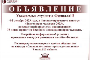 27 ноя / Все новости О Б Ъ Я В Л Е Н И ЕПОЛОЖЕНИЕ о проведении конкурса «Знаток прав человека-2023» 1. Общие правила 1.1. Настоящее положение определяет порядок проведения конкурса «Знаток прав человек...
