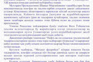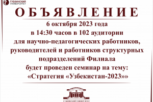 30 сент / Все новости С ДНЕМ УЧИТЕЛЕЙ И НАСТАВНИКОВ!В этом году Филиалу РГУ нефти и газа (НИУ) имени И.М.Губкина в городе Ташкенте исполнилось 16 лет. За этот, хоть и не большой, период времени Филиал успел стать ВУЗом-флагманом подготовки высококвалиф...