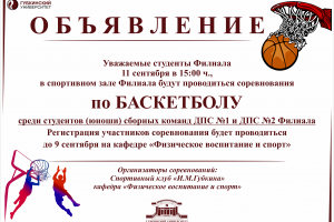 12 сент / Все новости В ФИЛИАЛЕ СОСТОЯЛИСЬ СПОРТИВНЫЕ СОРЕВНОВАНИЯ ПО БАСКЕТБОЛУВ целях реализации Указа Президента Республики Узбекистан от 24 января 2020 г. № УП-5924 «О мерах по дальнейшему совершенствованию и популяризации физической культуры и спорта в Республике Узбек...